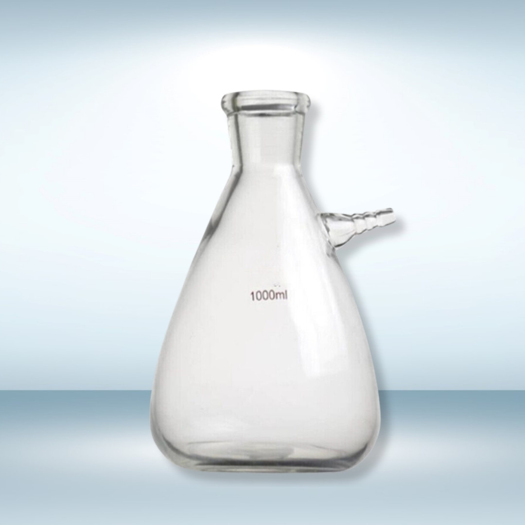 Design and Function: The integral side arm allows for quick, secure connection to a vacuum source (pump or aspirator). The flask is suitable for filtering larger volumes of solvents, acids, and bases. The ground-glass neck provides a tight seal for stoppers or specialized adapters. Ideal for college, university, and industrial quality control labs.