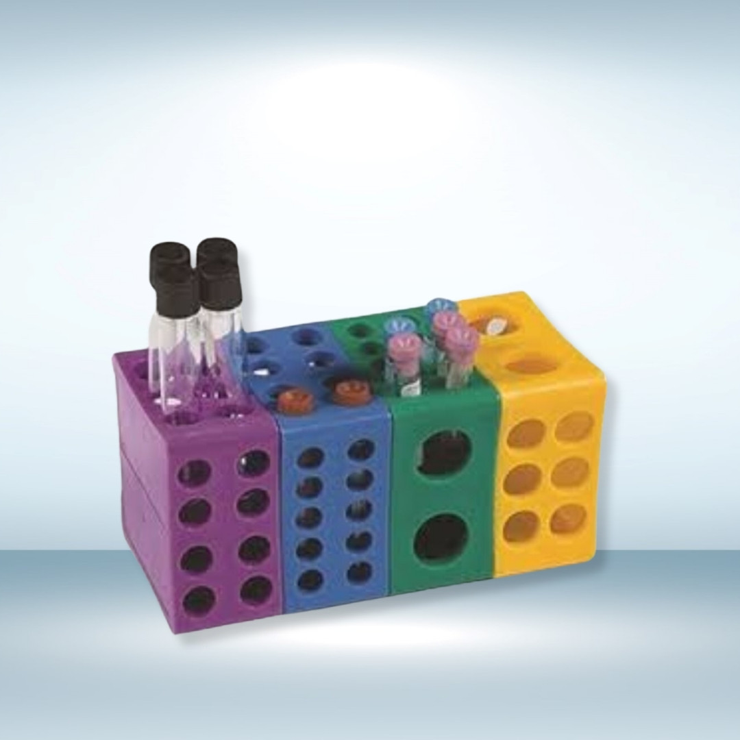 This rotatable multi-rack is ideal for organizing and accessing small tubes or instruments. Built from chemical-resistant plastic, it rotates smoothly on a central axis, allowing quick access to contents. Perfect for saving space and increasing efficiency in busy lab environments.